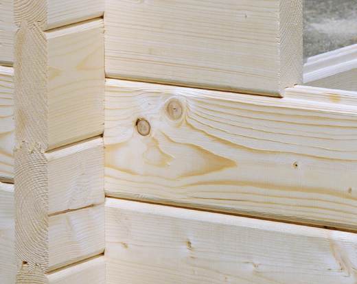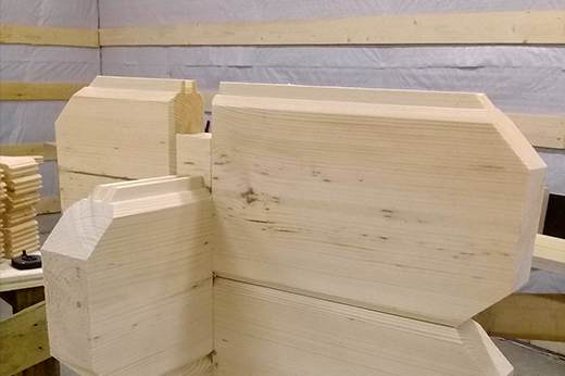 Углы делаются в чашу по технологии четырехстороннего замкового паза. Непродуваемый ветровой замок обеспечивает жесткость конструкции.